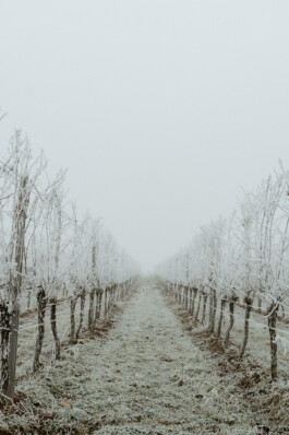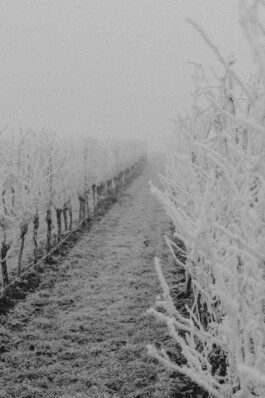 Selten ist ein solch frostiger Anblick in unseren Breitengraden. Während wir schliefen, haben sich die Weinberge heute Nacht in ein bezauberndes Eisland verwandelt. Frost. Es ist kalt. Sehr kalt. Die Reben können heute nicht geschnitten werden. Dies würde den Pflanzen schaden. Wir gehen in den Weinkeller und kümmern uns um die Weine, die demnächst abgefüllt werden.