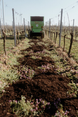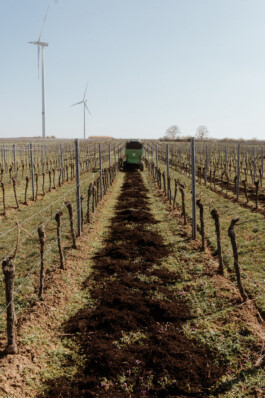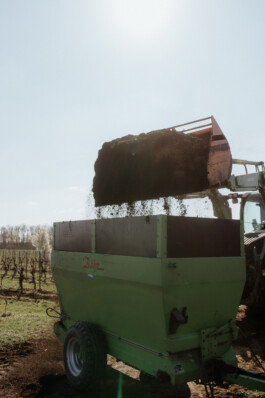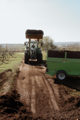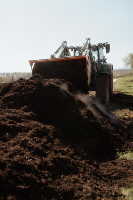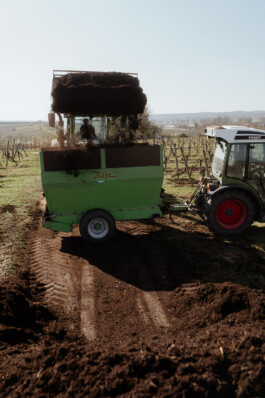 Der Frühling ist da! Manchmal geht es schneller, als man denkt. Während alles gerade noch in der Winterruhe war, beginnen doch die Reben bereits zu drücken. Bevor die Vegetation so richtig losgeht, bringen wir zwischen den Zeilen Kompost aus, der die Reben mit Nährstoffen versorgen wird. Nebenbei haben wir dieses Jahr auch eine große Ladung "Gartenglück" auf dem Hof abgeladen, denn auch hier wird der Boden in den Gärten verbessert. Gemüse bauen wir gerne selbst an.
